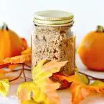 Transfer pumpkin pie sugar scrub to a 12 ounce canning jar or other jar of your choice.