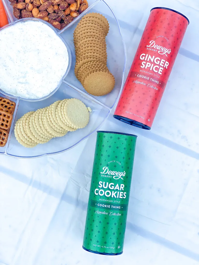 These cookie thins are packaged in tins to make them perfect for travel. They’re exceptionally thin and have unique flavors making them an elevated choice of cookies for an appetizer board.