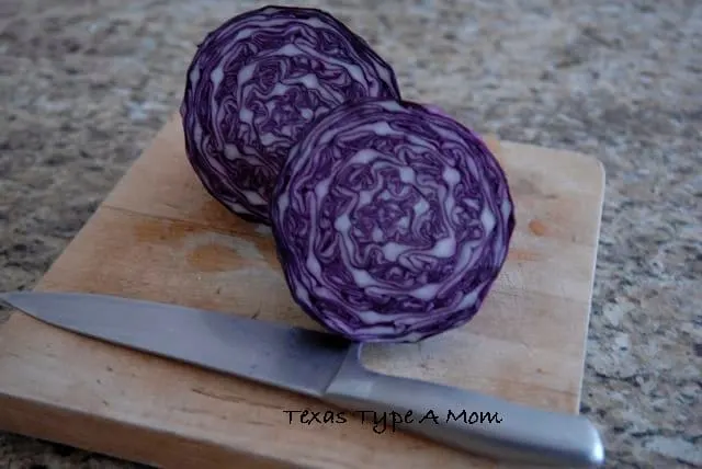1. Cut a red cabbage in half and chop into small pieces.